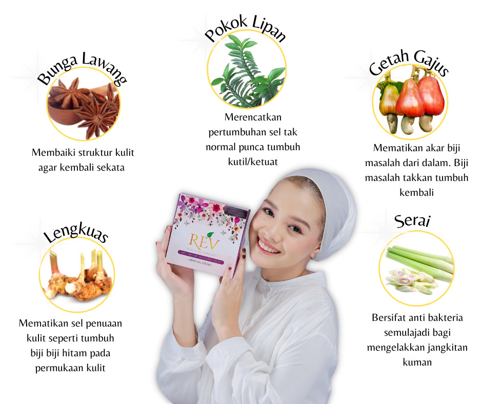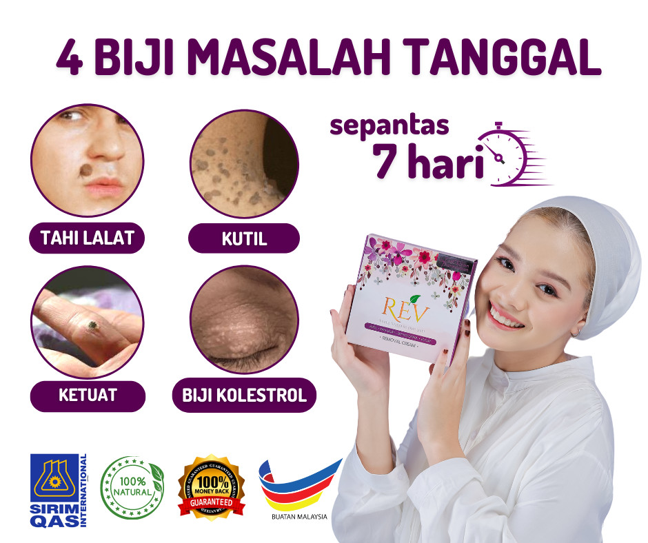 REV Removal Cream telah disahkan selamat oleh SIRIM, mengandungi 100% bahan semulajadi dan bebas bahan kimia / merkuri. InshaAllah selamat daripada kesan sampingan dan radang.